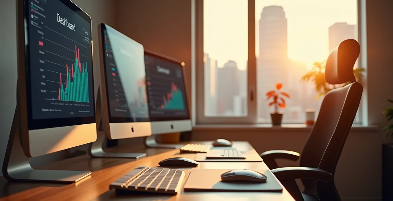 Pour illustrer la différence fondamentale entre une approche de base et un système professionnel, l’image ci-dessous oppose symboliquement un poste de travail minimaliste à un environnement de surveillance de données complexe, reflétant le gain en profondeur et en contrôle qu’offre un outil spécialisé.